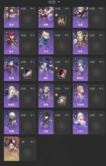 【女、70等、23金角、14金專】61長夜月61砂金21白厄21流螢11忘 還有258抽