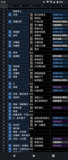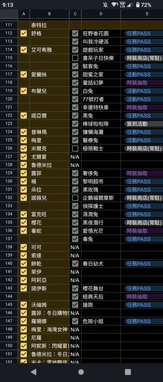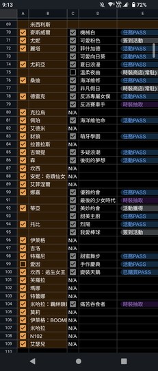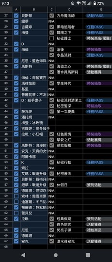(角色截圖可能未即時更新,請以表格截圖為主)