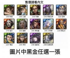隨機黑金+隨機黑白金卡500張以上+1450~1650石頭$1250 (等級300等)