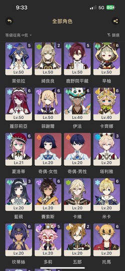 原神墊角色大保50武器0