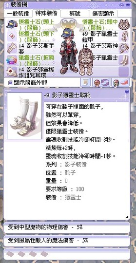 職套套組: +9 影子獵靈士鎧甲、影子獵靈士戰靴(職業增傷與穩定性提升)