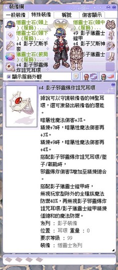 飾品套組: +4 影子邪靈爆炸耳環、影子邪靈爆炸墜子(核心破防來源,傷害倍增關鍵)