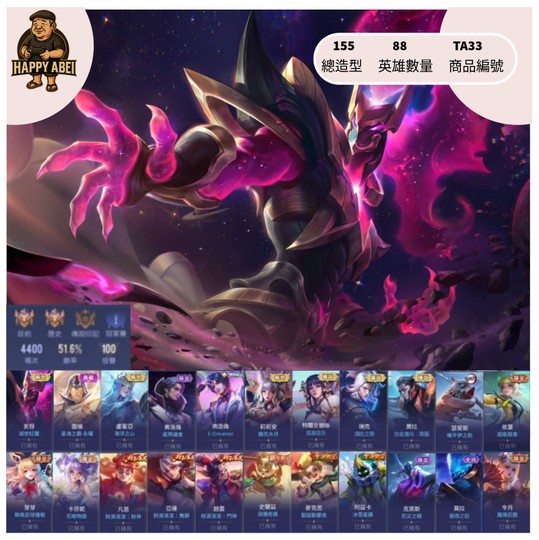 【Garena帳有綁定、星耀、無VIP、88英、155造】[分期/直購]快樂阿北傳說館~亥犽滅世 圖倫永曜 鏡花水月星際議會多1200直購