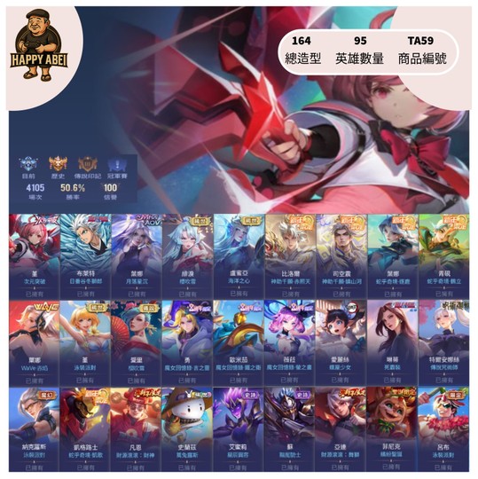【Garena帳有綁定、鑽石、無VIP、95英、164造】[分期/直購]快樂阿北傳說館 堇次元 冬師郎 葉娜月落 緋淚櫻吹雪 多新年限定