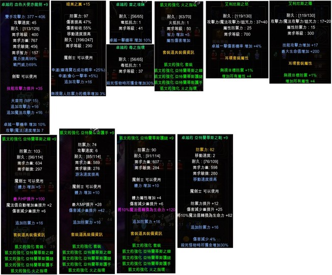 +9強化凱文亞套、+9赤龍劍、+15暗黑之翼、左右耳