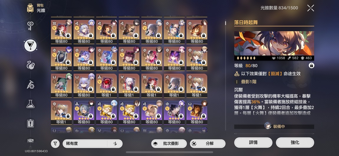 【女、70等、39金角、30金專】重課號退遊6+5卡芙卡花火黃泉知更鳥黑天鵝2+1海瑟音流螢大黑塔飛霄銀狼