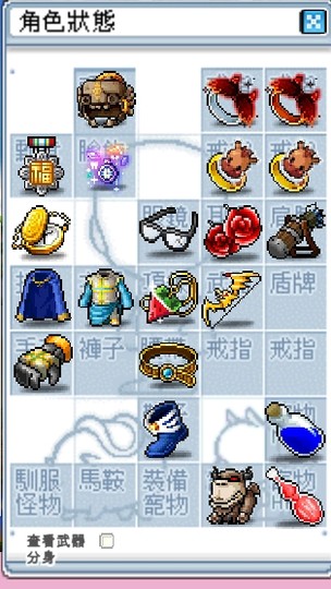 • 三件套(腰帶100%)、炎盔46屬(17力)、113AD龍形弓、7屬11AD手套