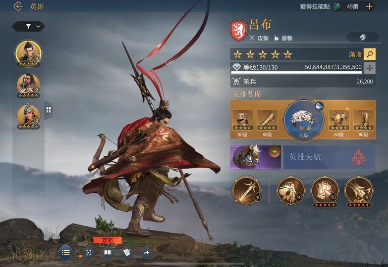 【33等】5300w呂布隊1200w 掛飾沸血 寶石紅 紅1
