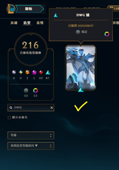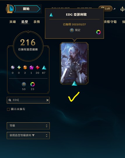 等級398 + 全英雄 + 造型216個 / 尊爵達瑞斯 + EDG亞菲利歐