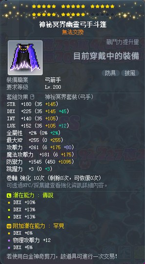 【神秘冥界幽靈弓手斗篷】25星 次頂 36敏 附加罕見 6%5% 12物 全V 5000實收