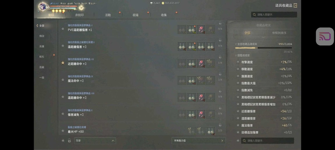 10件非刻印裝備(紅色框起來為非刻印)