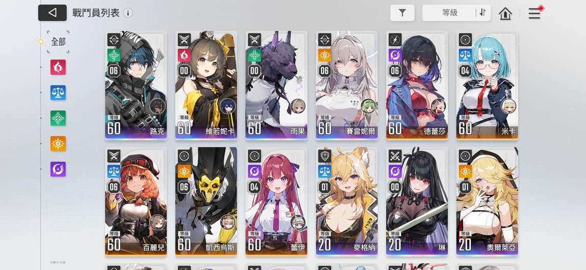裝備練度 60級角色全部+5金色 倉庫有超大量待用金色裝備