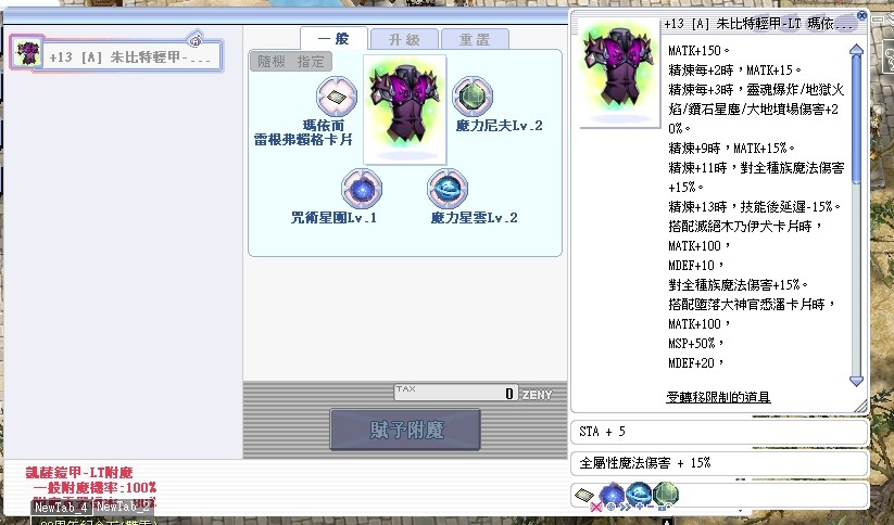 +13A 朱比特輕甲-LT 附魔:魔2魔2咒1 磁條:STA+5全屬魔傷+15%