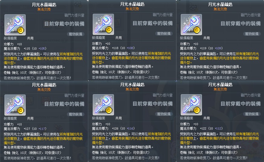 【月光水晶鑰匙】月光鑰匙【P寵裝備/10+105/108/109/112/116/117魔攻】