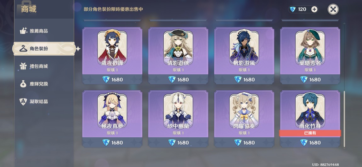 【女、58等、23金角、8金武】雷電將軍1+1 草神 高練度