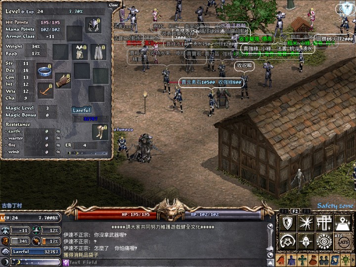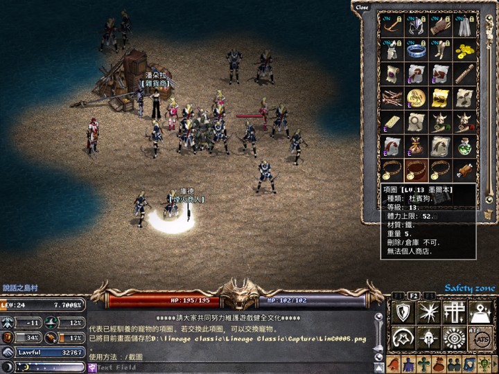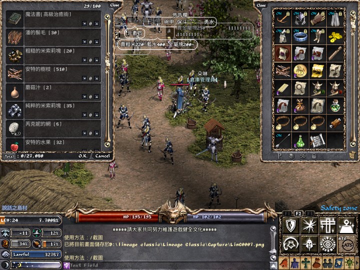 倉庫大概4萬左右材料(元素石/粗米*60/金屬塊)/15等敏盔/4000罐紅水