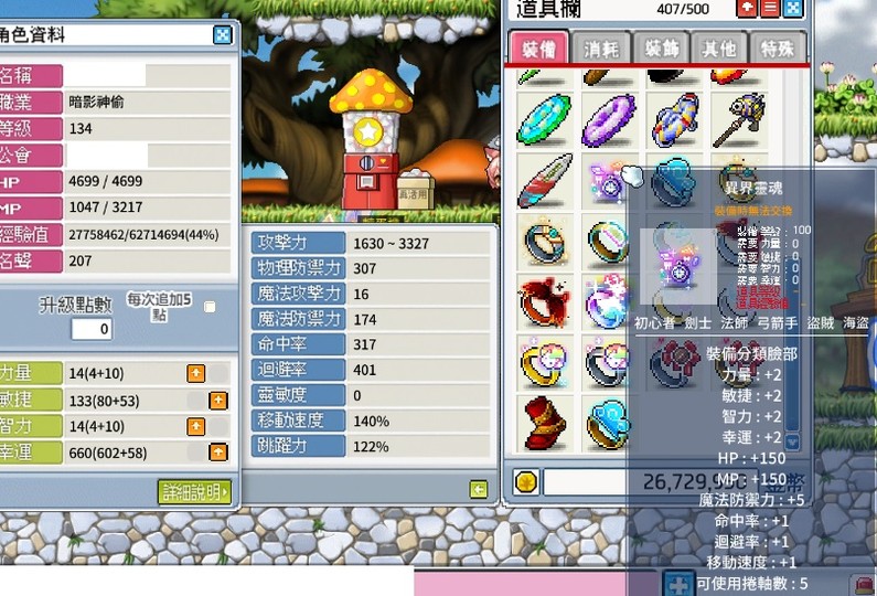 【134等、神偷_暗影神偷】【刀賊/暗影神偷】全洗血/美金造型/背包滿/寵物全開/可交易異界 高CP值帳號