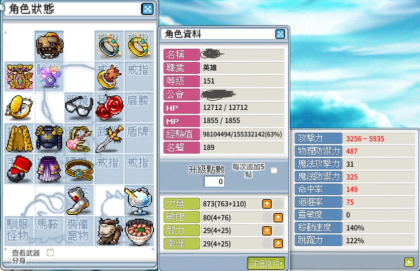 持續遊玩練功中、小幅度更動身上楓幣