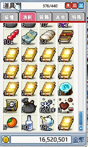 楓幣剩1600萬多,620雪花,有命中裝可打拉圖