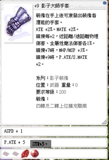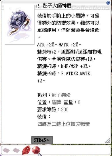 +18大師手盾STR POW 手套頂附ASPD+1 P.ATK+5 可拆