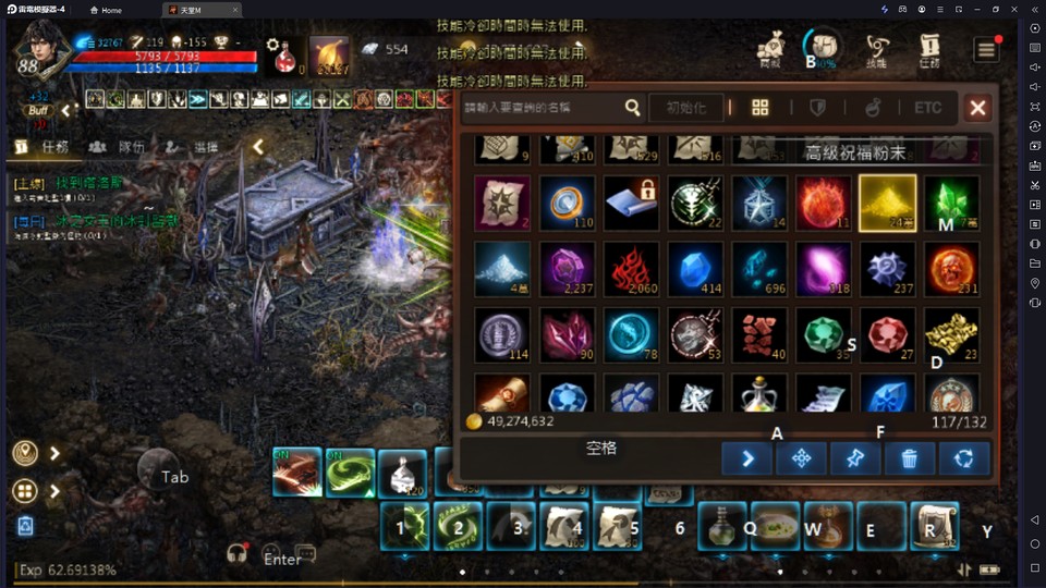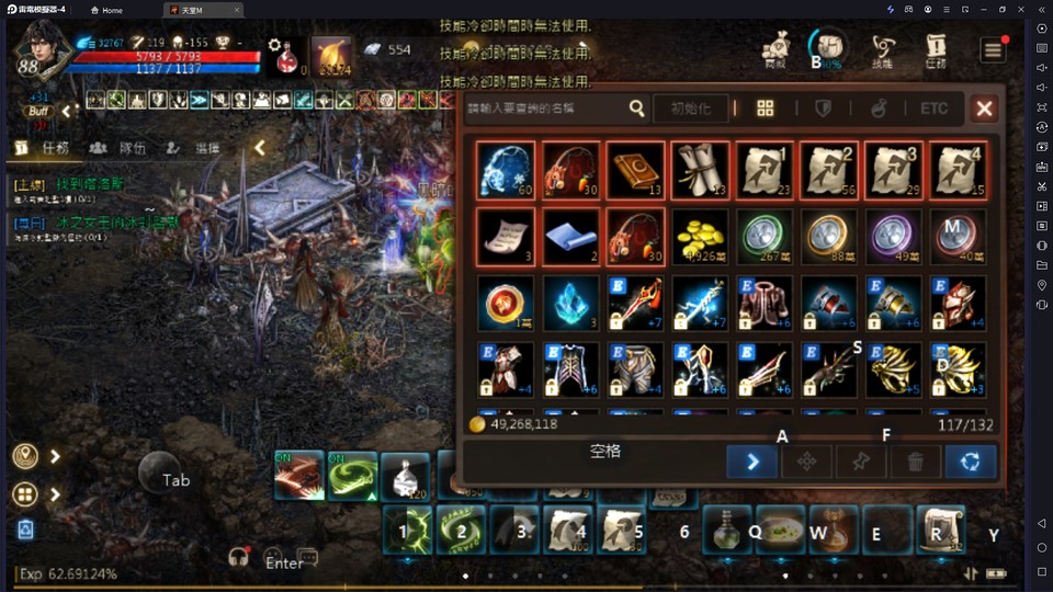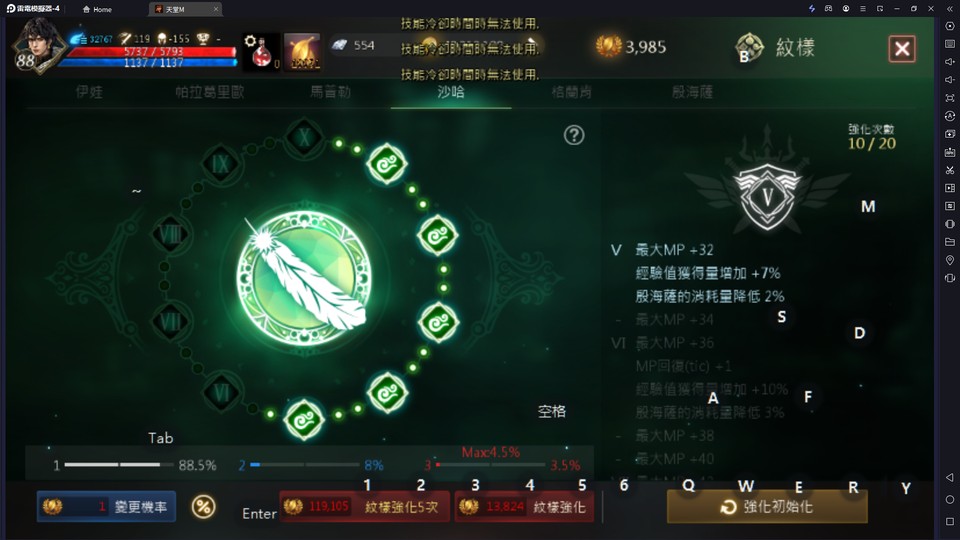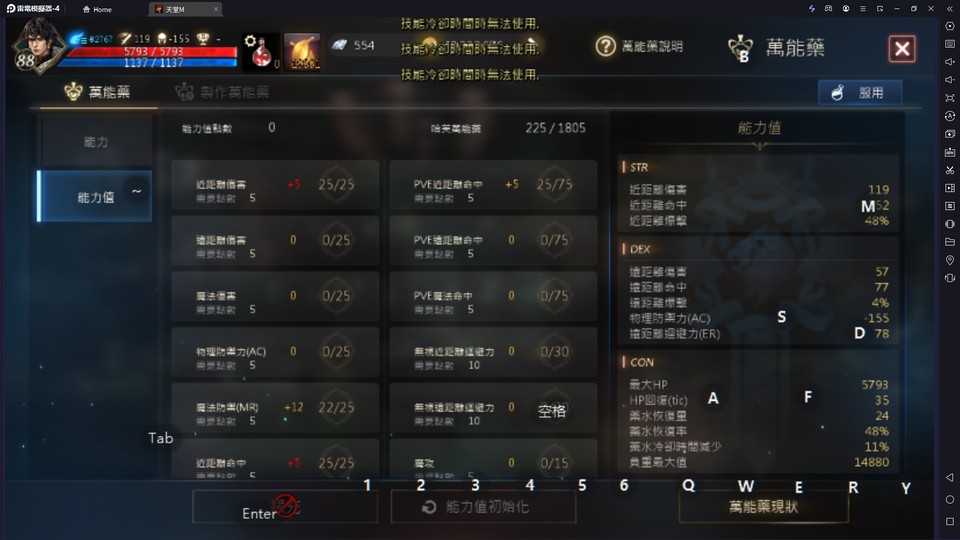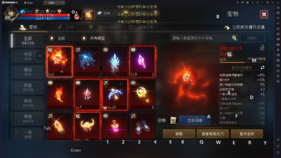 本尊職業:魔劍士 88等73%,6紅技,名譽幣267萬,其餘請看圖