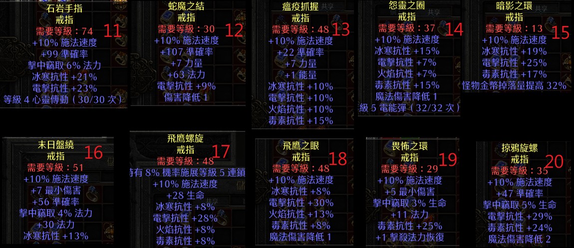 DLC術士軍臨 術士戒指術士黃戒 高施戒 吸血戒 抗性力量敏捷 應有盡有(如圖
