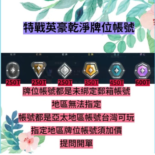 此單為未排位帳號可直下庫存有=現貨其他牌位需求請提問開單