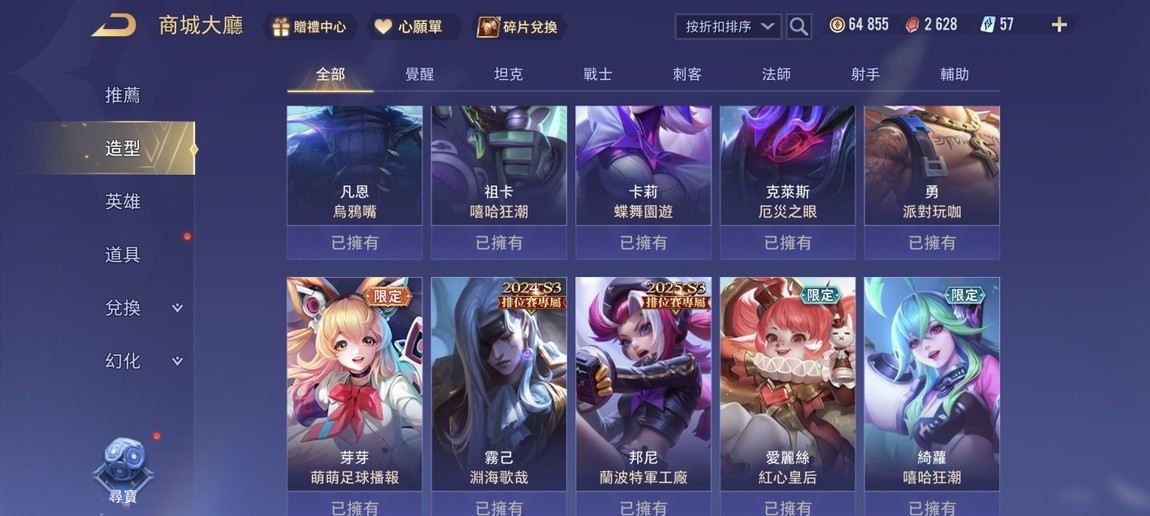 【Garena帳無綁無連、鑽石、V7、34英、60造】無綁無連 文鰩 馬道貂蟬 星際洛倫 基德
