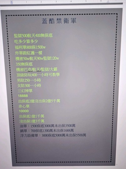 物品種類: 代練