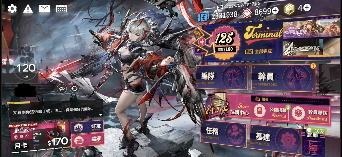 • 6年養成成果:老號無封禁紀錄,資源充裕(源石滿倉、家具全解鎖),活動全通關