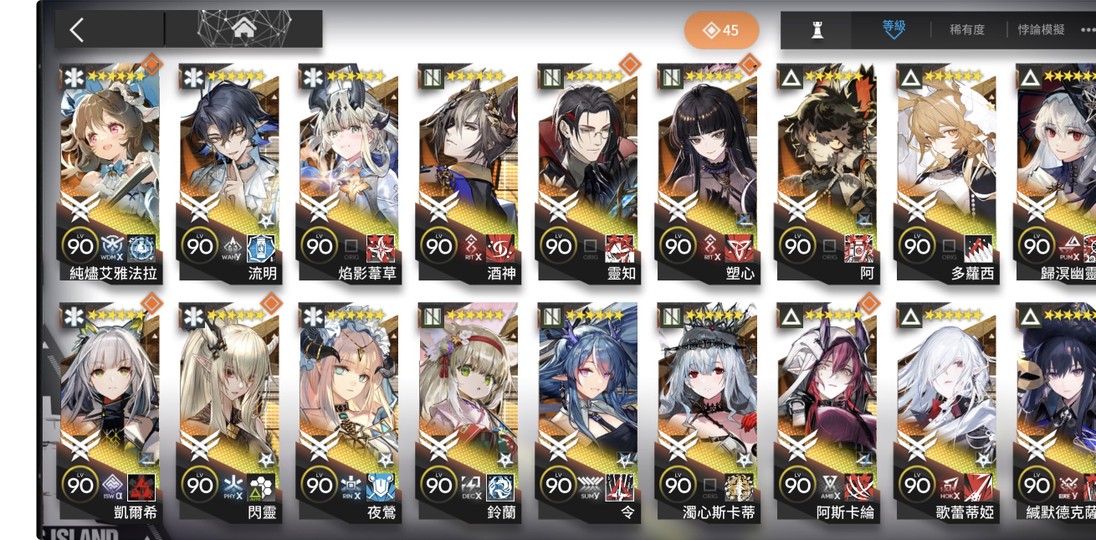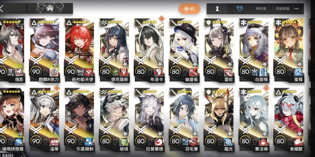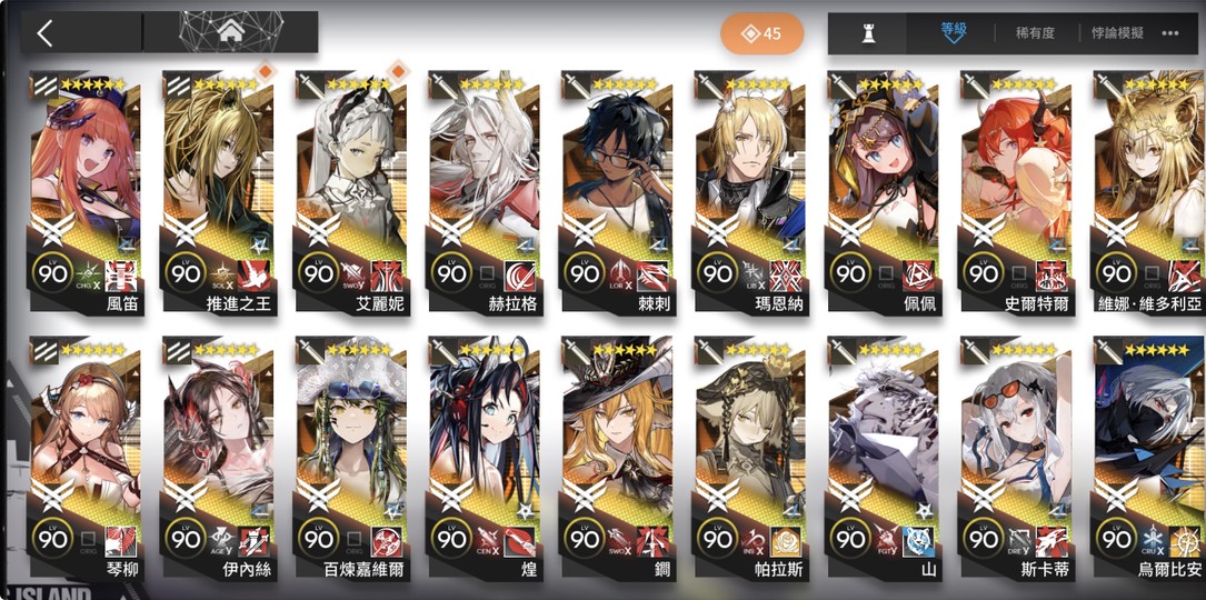 • 全六星幹員集齊:超過50位六星幹員,高練度全開(多數90+級,專武/模組滿級)