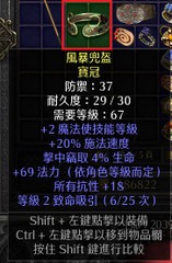 非天梯 黃頭盔 +2法師技能+20高施法+18全抗+69法