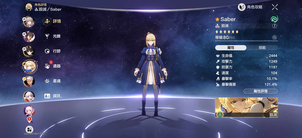 【女、63等、5金角、0金專】進度號 剩餘很多星穹 目前只抽fate角色 亞瑟王有專武