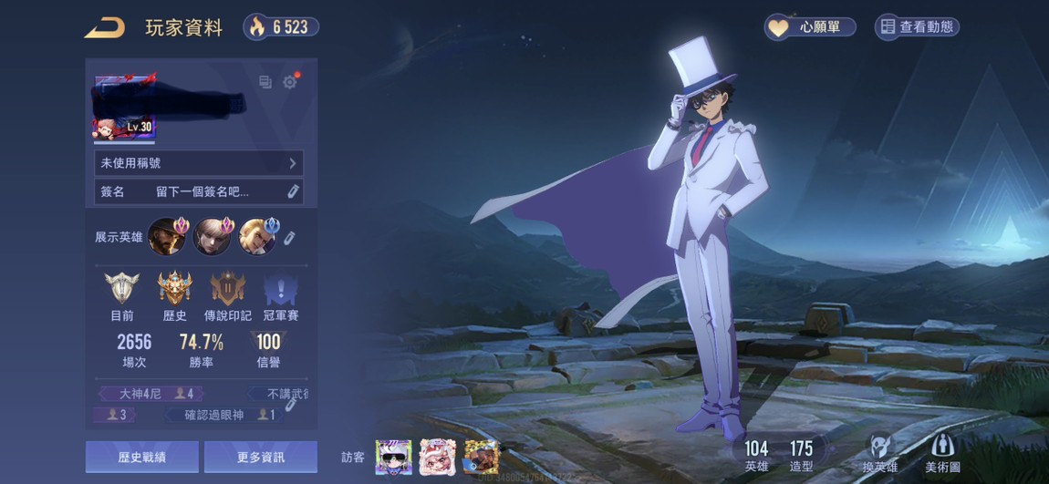 【Garena帳無綁無連、先鋒傳說·新月、V8、104英、175造】慶祝扣倒捷克🎉五條 柯南 基德 虎杖 庫拉皮卡 多聯動稀世傳説限定 無綁身分