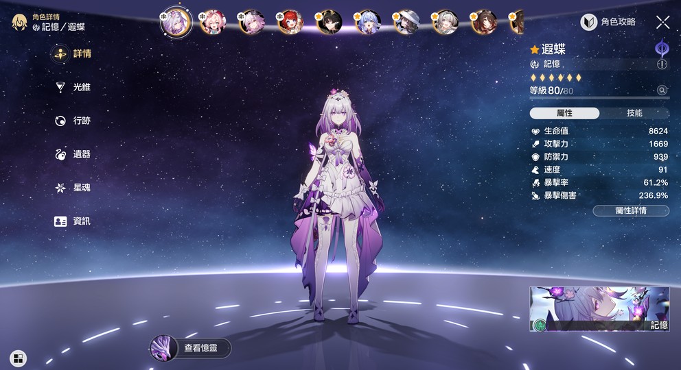 記憶隊遐蝶6+1風堇0+1長夜月0+1提寶1+1昔漣0+1