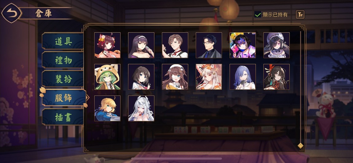 台服:四貴人-東城玄音(締結契約)/南楓花(締結契約)/年限-璃央(好感度已升滿)/合作角色-園城寺怜(締結契約)/Saber(締結契約&有限定造型)/自家系列-辛西婭(締結契約)