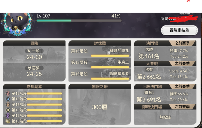 【107等】小課退坑/多6突破腳色/塔全滿/惡夢24-1穩刷/google&FB皆可綁