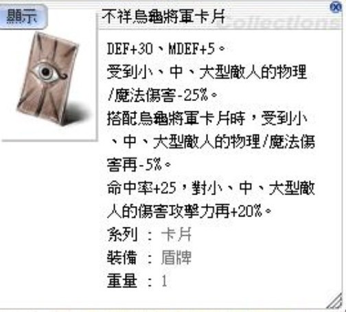 龜殼堅硬鋼盾 + 不祥烏龜將軍卡片