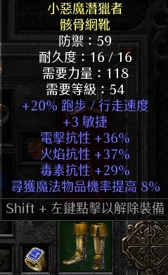 鞋子:百抗鞋-20跑3敏36電抗37火抗29毒抗 200