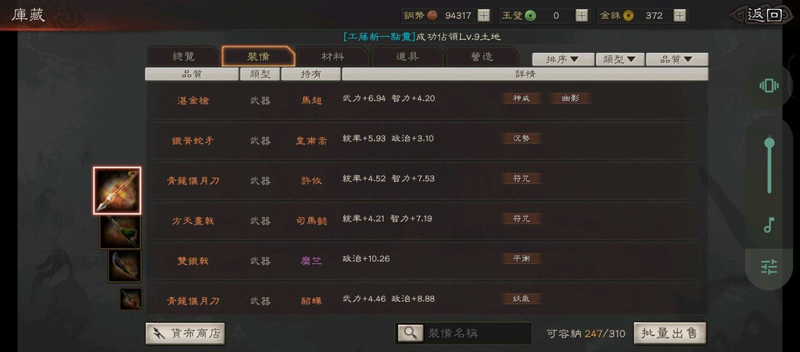 神威幽影、沉勢、雍雅、出奇、暴躁、剛體、長建、回元、4*踩踏、號令、2*援助、5*靈動.....