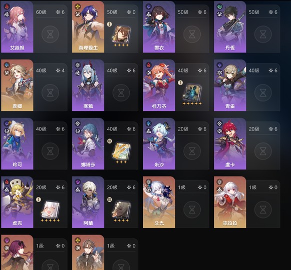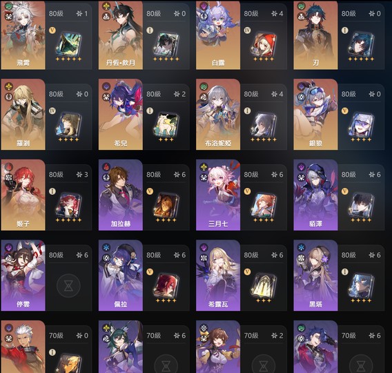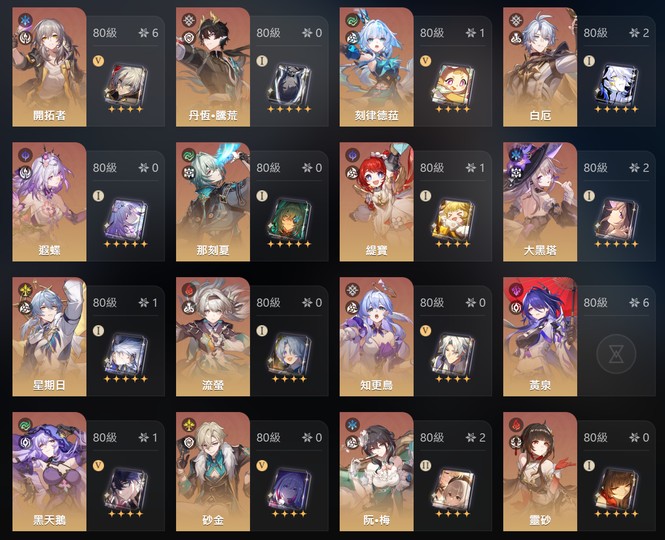 儀器都有刷 主c輔助練度都很高