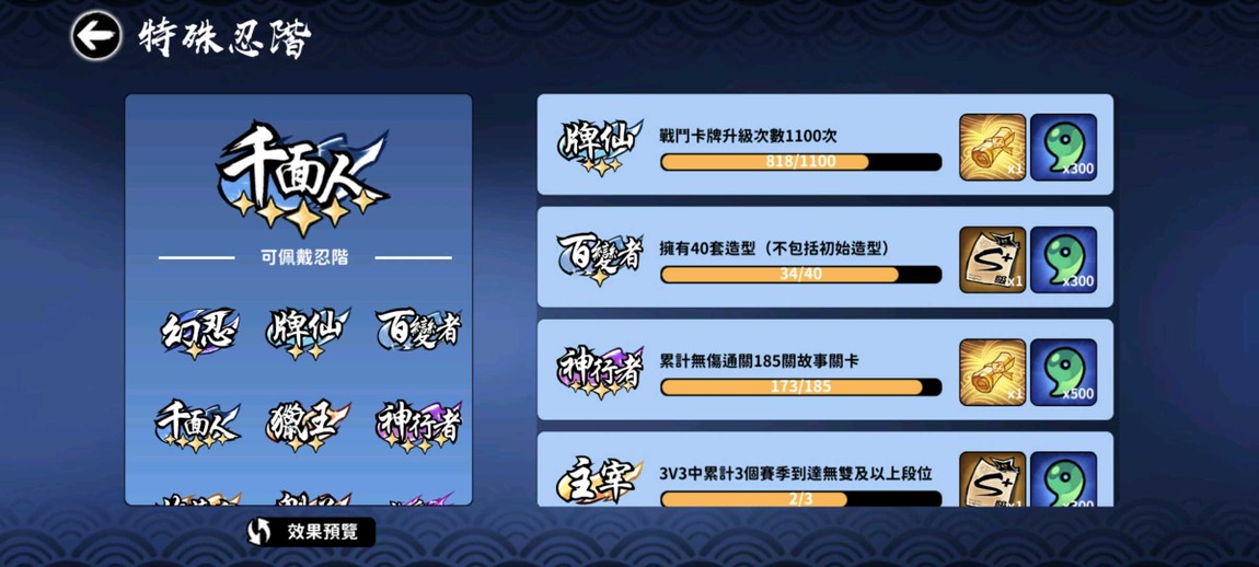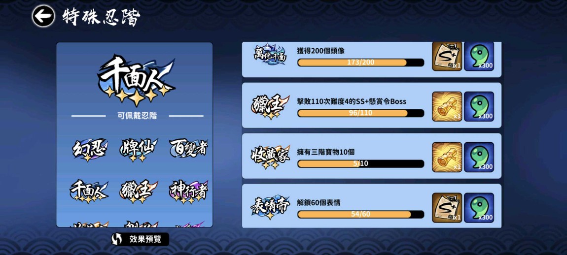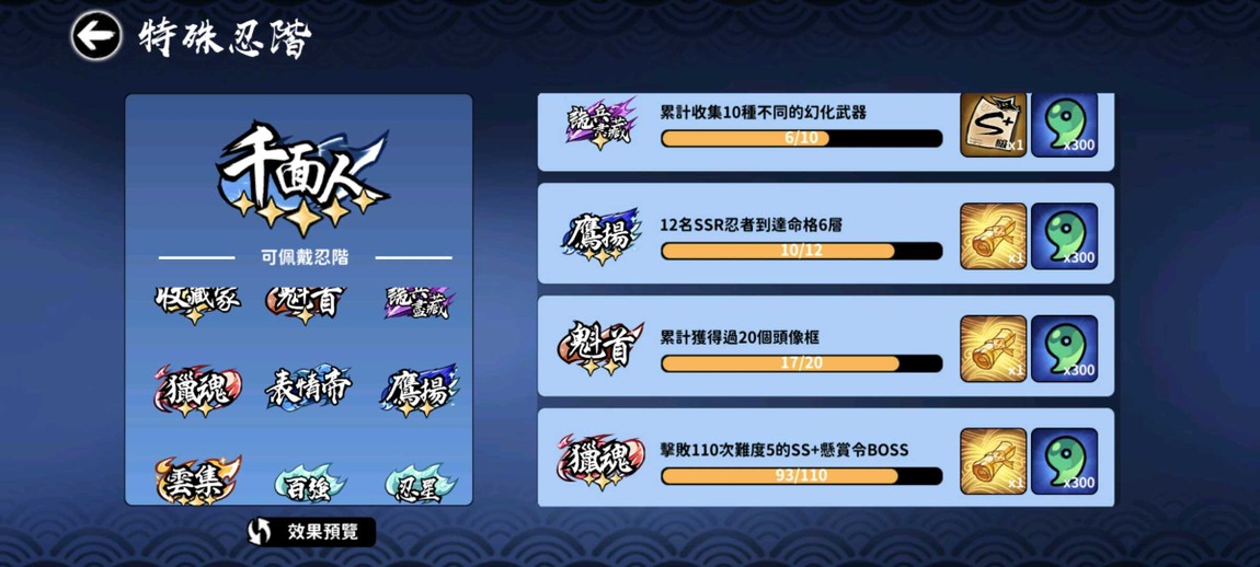 稀有靈識421個(每個月可花100靈識換取20片忍者碎片)