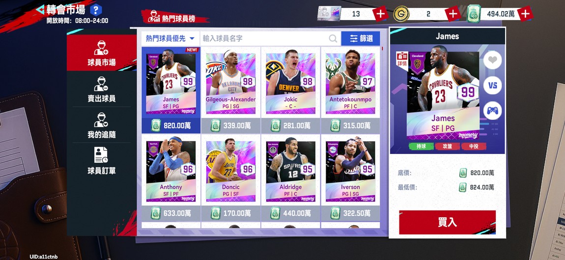 【初始號】[售帳號]內有紫卡AGG SGA Tatum KD,無綁定、可改名,歡迎接手🤝