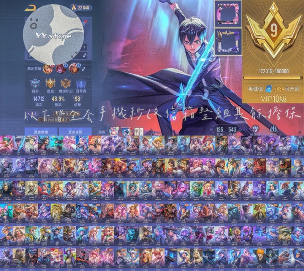 【Garena帳有綁定、星耀、V9、125英、543造】500造 桐人2️⃣代 朽木 彌豆子 小月亮 典藏菫 月落 多抽獎多盛典直購💫