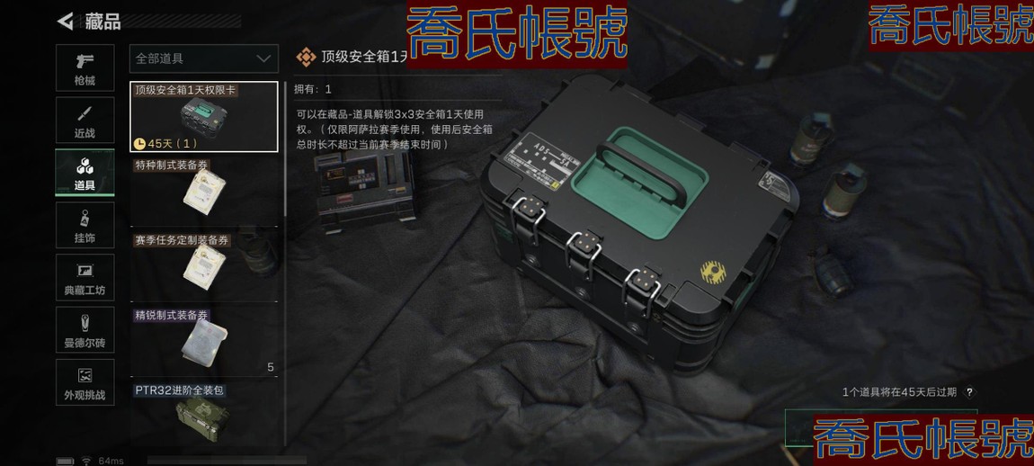 【OBSAGPG113942】總資產:200M,哈夫幣:16300W,武器皮膚:4,烽火57級:黑鷹_,【安全箱】進階安全箱;【特勤處等級】倉庫LV.5,靶場LV.4,訓練中心LV.6;【幹員皮膚】紅狼電鋸驚魂;【近戰武器】近戰武器-黑鷹;【步槍皮膚】SCAR-H戰鬥步槍-國風,SCAR-H戰鬥步槍-啟航,KC17突擊步槍-電鋸驚魂;(資訊源於賣家釋出,實際資訊以驗號為準)【QQ登入】純幣1.63億加上紅1.7億 多