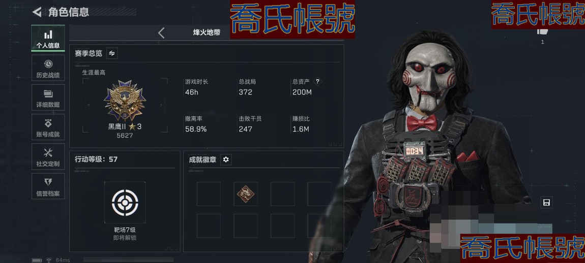 【初始號】【11等】總資產:200M,哈夫幣:16300W,武器皮膚:4,烽火57級:黑鷹_,進階