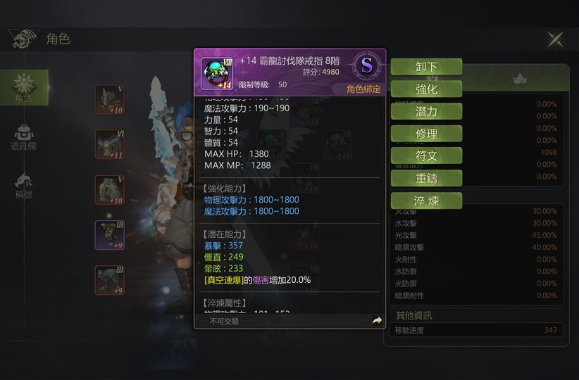 【50等】售 8.3萬月光 首領117%爆傷77%真空120%光攻55% 光真空/水月