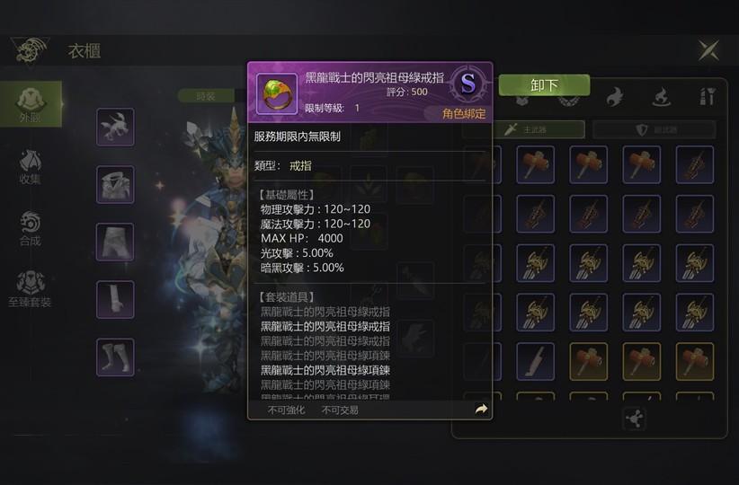 -4S飾品全部正屬-魔攻項鍊,雙光暗攻戒指、敏智體耳環