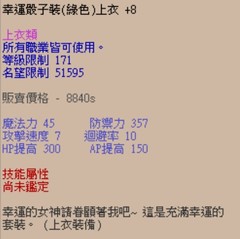 +8幸運骰子裝(綠色)上衣 +9褲子((綠骰))
