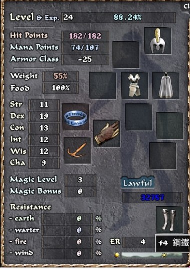 24級妖精,有+6十字,+4腕甲,+4鋼靴,精煉,保斗,試煉敏捷頭盔